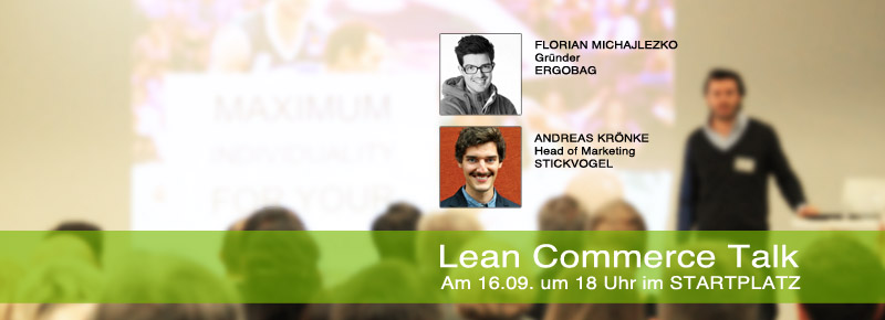 Viele Unternehmen fußen mittlerweile auf der Methode des Lean Startup. Die E-Commerce Branche ist hierfür prädestiniert. Daher laden wir dich zum Lean Commerce Talk am 16. September in den STARTPLATZ. Um 18 Uhr präsentieren Andreas Krönke von Stickvogel und Florian Michajlezko von ergobag ihre Erfolgsgeschichten.