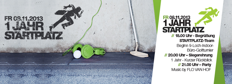 - Der STARTPLATZ feiert seinen ersten Geburtstag! Kommt darum ab 17 Uhr bei uns im Mediapark auf eine Runde Indoor-Golf und viele kühle Getränke vorbei.