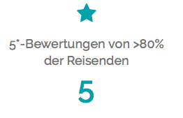- – 5 Sterne Bewertung von über 80 % der Gäste