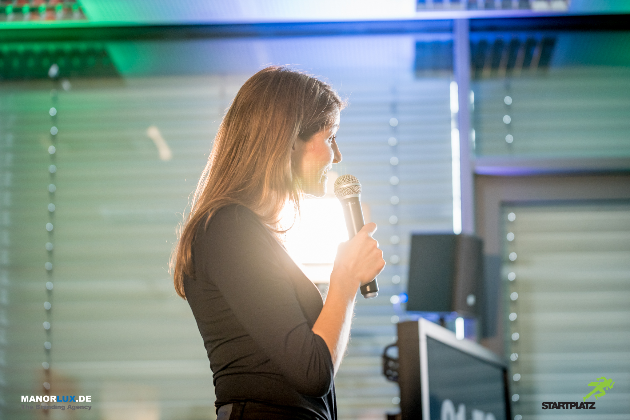 Victoria Blechman-Pomogajko eröffnet das Rheinland-Pitch Halbfinale *Female Founders Edition* in KölnNachdem alle vier Startups sich präsentieren konnten und sich den kritischen Fragen des Publikums stellten, hatten alle Teilnehmer die Möglichkeit sich bei Speisen und Getränken zu stärken und über ihre Favoritin des Abends abzustimmen.