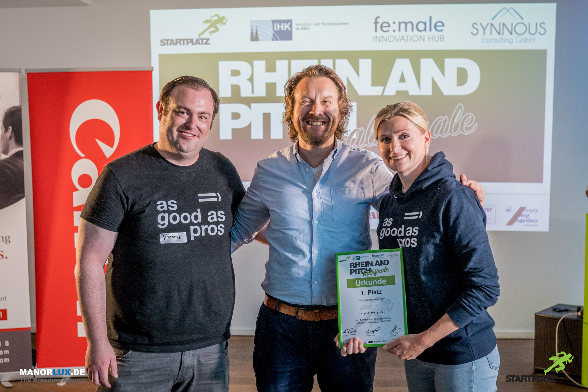 Am Montag Abend fand in Zusammenarbeit mit dem Female Innovation Hub, der IHK Köln und der Synnous Consulting GmbH, die erste *Female Founders Edition* des Rheinland-Pitch Halbfinales in Köln statt. Vier Gründerinnen hatten dabei die Chance ihre Geschäftsidee vor 100 Zuschauern zu präsentieren und sich einen der heißbegehrten Plätze für das große Rheinland-Pitch Sommerfinale am 18. Juni im Düsseldorfer Flughafen zu sichern. Nach spannenden Startup-Pitches wählte das Kölner Publikum As Good As Pros zum Sieger, gefolgt von den Teams GOODGIVE, fairlanguage und Happy Rebels.