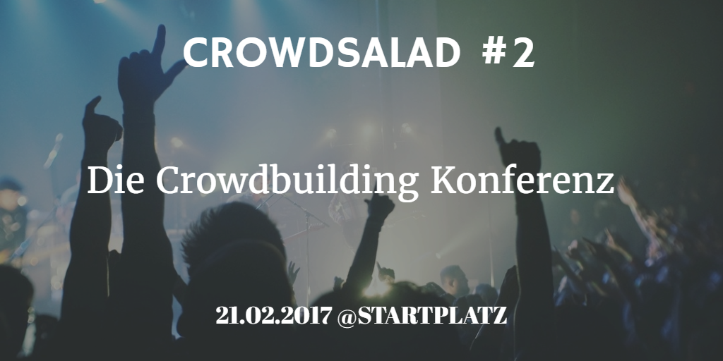 Mehr über Crowdfunding, erfahrt ihr am 21.02.2017 bei der CROWDSALAD #2 Konferenz im STARTPLATZ!