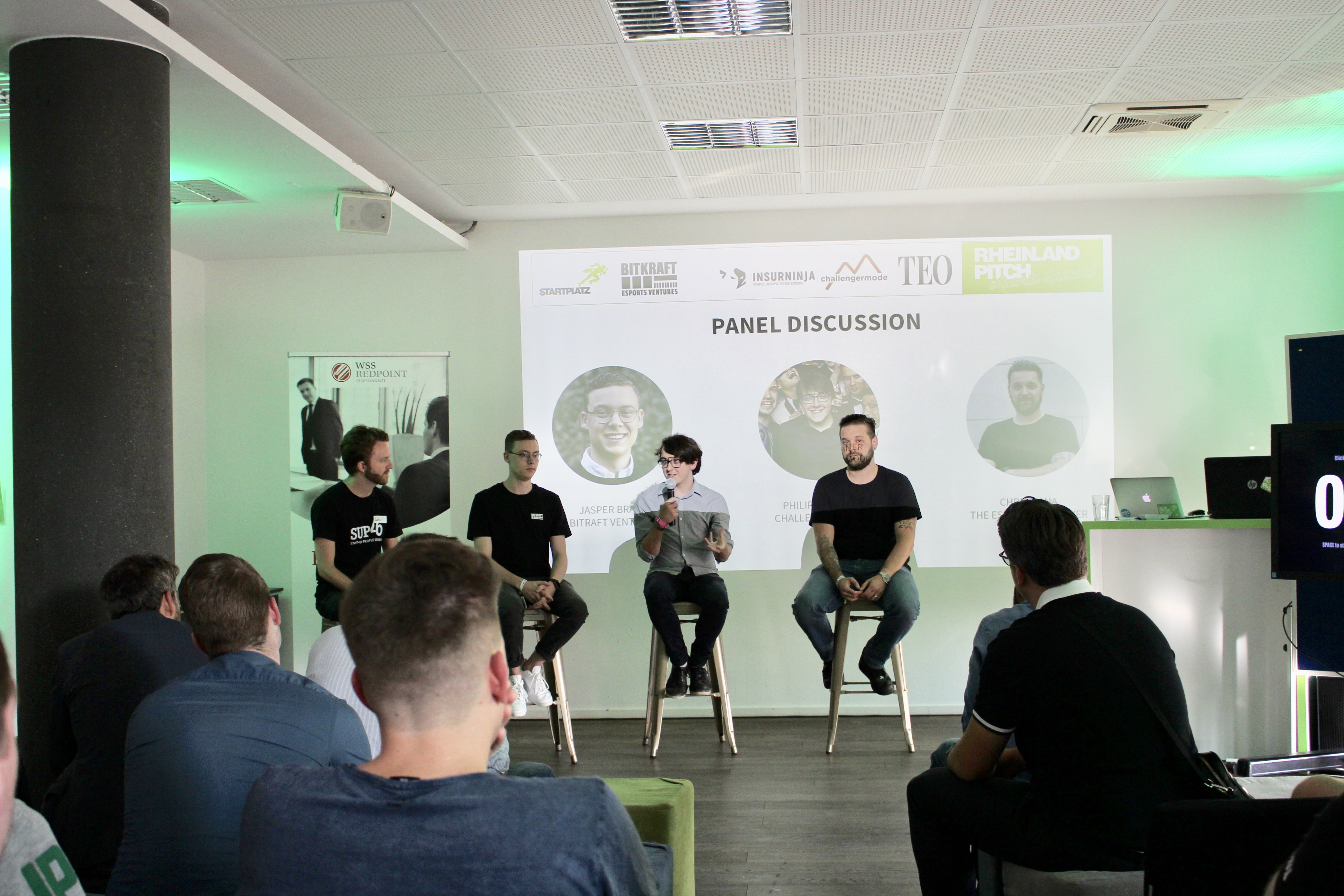 Podiumsdiskussion mit Jasper Brand (BITKRAFT Verntures), Philip Hübner (Challengermode) und Chris Hana (The Esports Observer)Im Anschluss konnten sich die Teilnehmer via Online-Voting für ihren Favoriten entscheiden und hatten die Gelegenheit zum Netzwerken. Das Rheinland-Pitch Team wertete die Stimmen währenddessen aus und verkündete um 21:00 Uhr den Gewinner Shikenso.