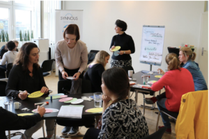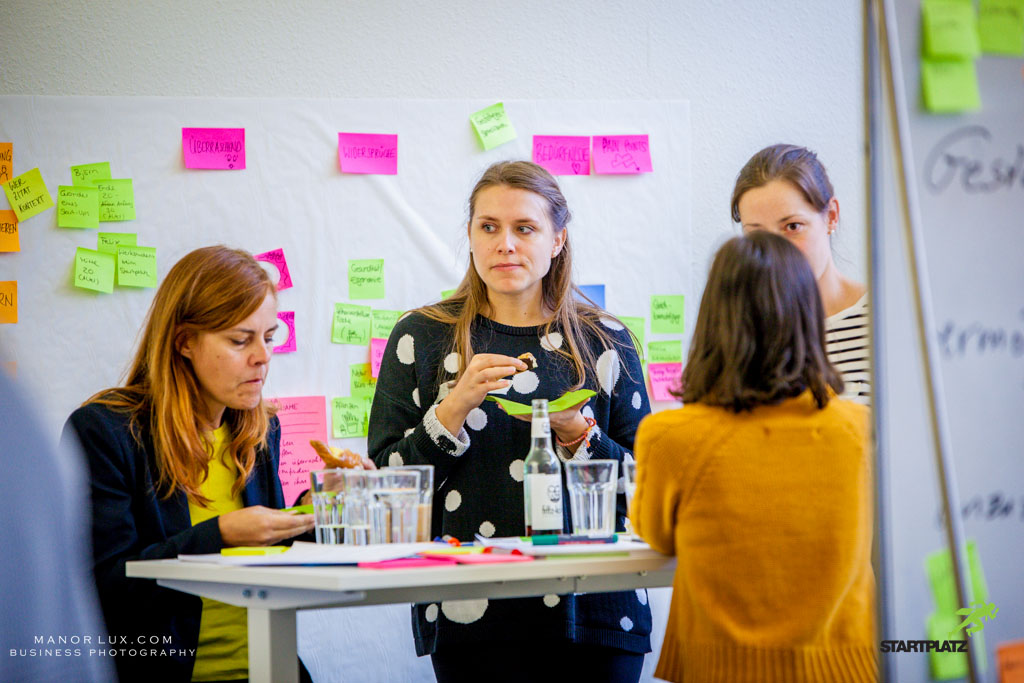Wie auch in anderen Design Thinking Workshops, ist ein gut gemischtes Team die Grundvoraussetzung für einen kreativen Arbeitsprozess. Und so haben sich auch diesmal wieder Frauen und Männer im Alter von 24 bis 56 Jahren, von der Studentin über die Marktforscherin bis zum Innovationsmanager zusammengefunden, um gemeinsam die Methode kennenzulernen und an einer aktuellen Frage zu arbeiten. Viele hatten schon mal von Design Thinking gehört, gearbeitet hat noch keiner damit.