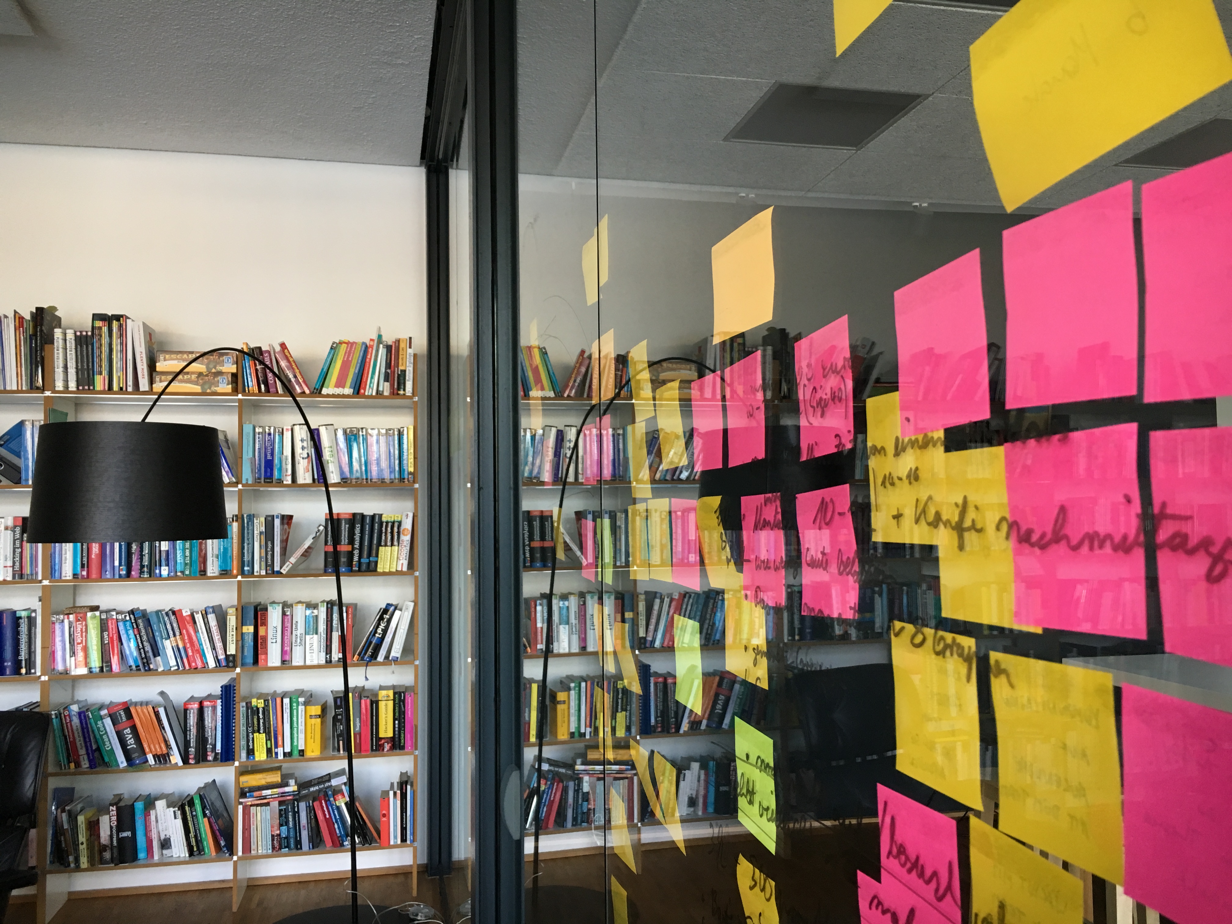 Sipgate nicht fehlen. Axel nahm sich viel Zeit, um den Teilnehmern die Arbeitsweisen von Sipgate näherzubringen und alles zu zeigen. Und zu sehen gab es viel, denn obwohl Sipgate als Anbieter von Voice-over-IP-Telefonie eine reine „Digitalbutze“ ist, fällt auf: Ganz analog klebt hier alles voll mit bunten Zetteln, meist auf übergroßen Boards.