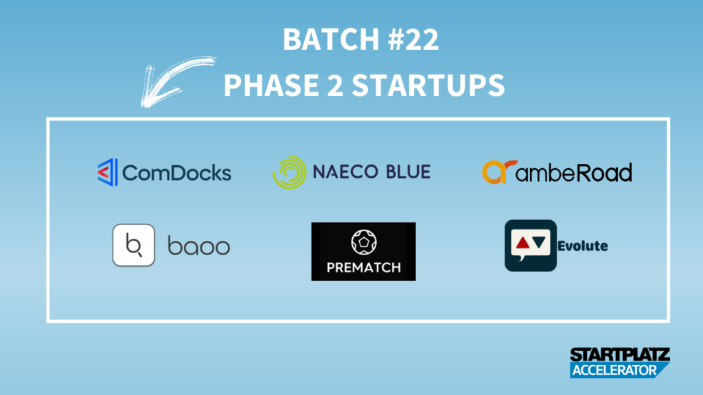 Marius: Wir tracken mit den Teams ihre KPIs. Die KPIs, die die Teams in der ersten Programmphase tracken wollen, legen sie auch am Anfang selber fest, dazu haben wir auch selbstverständlich eine Expert Session. In der sogenannten „Founder Session“ verfolgen wir dann das Ganze wöchentlich und schauen über die KPIs der Teams. Wir lernen die Teams ja auch gut kennen und können somit einordnen, warum sich eine KPI entwickelt hat, wie sie es tat. Daraus ergibt sich dann ein Bild, ob das Team für Phase zwei passt und auch, ob die Teams schon bereit sind für die weiteren Anforderungen. Noch ein Kriterium, das auch wichtig ist, ist die Beteiligung. Die Teams sollten an den Sessions teilnehmen, natürlich die Ressourcen nutzen, vom Programm profitieren und sich untereinander unterstützen. Das Ganze soll ein Geben und Nehmen sein. Als letztes Kriterium spielt dann noch die Performance beim Midterm-Pitch eine Rolle.