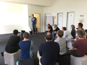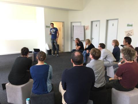 Für die Teilnehmer des Design Thinking Workshops Scientist Edition am 7. September begann der Morgen mit der Vorstellung drei innovativer Startups des STARTPLATZ Düsseldorf. Den Startschuss gab Dimitri von WOCALS, der in einem kurzen 7-minütigen Pitch das Geschäftsmodell des jungen Unternehmens präsentierte und abschließend mit einem kurzen Exkurs ins Thema Lean Startup erklärte, wie die Methode dem jungen Unternehmen zu nachhaltigem Erfolg verhalf.