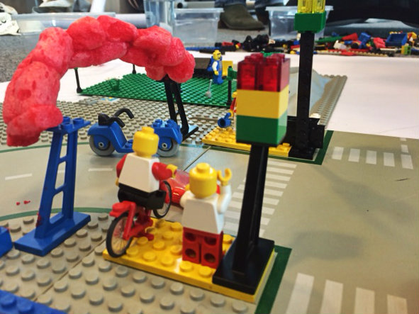 Abertausende kleiner LEGOteilchen verteilten sich über den Fußboden, als alle anfingen ihre Ideen in Prototypen umzusetzen. Glücklicherweise blieb es den Teilnehmern erspart, sich barfuß durch den Raum bewegen zu müssen auf der Suche nach dem kleinen vollendenden Detail.