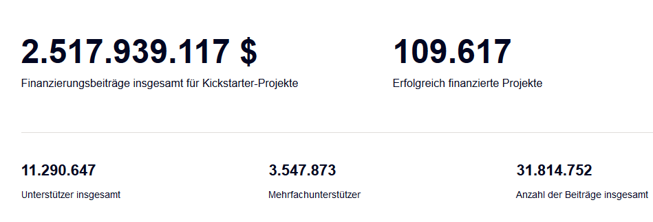 Kickstarter ist eine der bekanntesten Internetplattformen zur Projektfinanzierung über Crowdfundingt weltweit: Hier die offiziellen Zahlen vom Kickstarter bis am 28.07.2016: