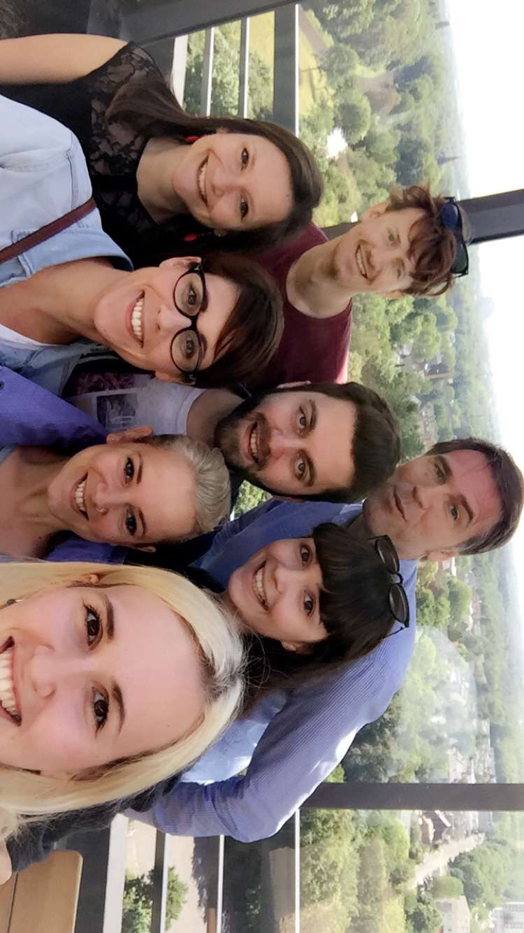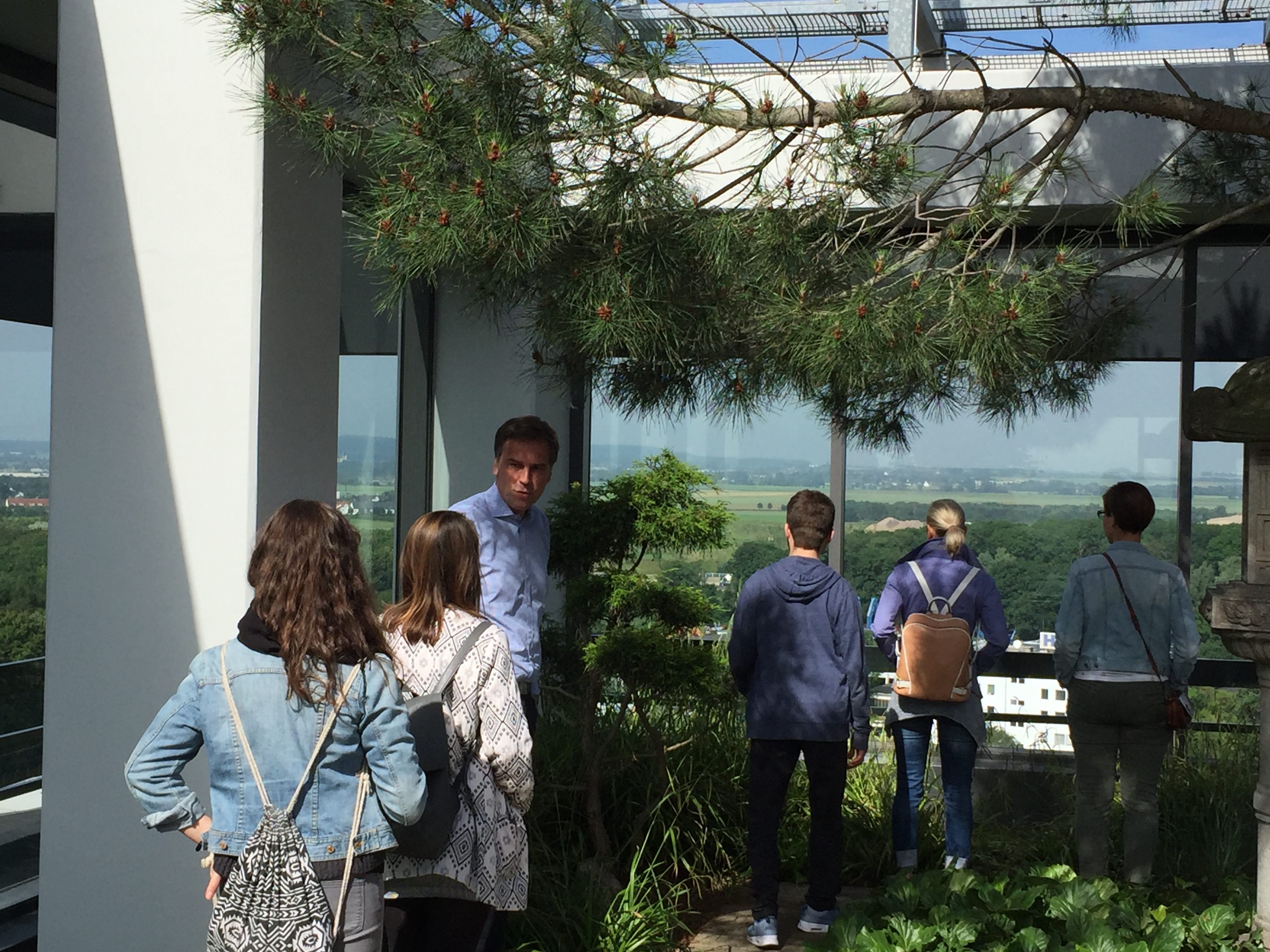 Um 9 Uhr morgens haben wir, das STARTPLATZ-Team, uns am Friesenplatz getroffen um die langgeplante Startup-Tour anzugehen. Total aufgeregt und neugierig kamen die ersten Werkstudenten an. Auch wenn die Startup-Szene im Vordergrund stand, konnte man die Tour auch als Kölner Stadttour nennen, denn es ging gefühlt einmal durch ganz Köln. Ahnungslos folgten wir Victoria in die Straßenbahn, die uns um kurz vor 10 in Köln-Bocklemünd absetzte. Dass Köln auch wunderschöne grün und ruhig sein kann, wissen wir seit dem auch. Nach einem Spaziergang im ländlichen Köln-Bocklemünd, sind wir vor einem in die Höhe ragenden Gebäude stehen geblieben, dem BioCampus. Ob das wirklich etwas mit Startups zu tun hat? Im 12ten Stock angekommen (natürlich mit dem Aufzug ;) ) wurden wir herzlich von Andre Van Hall (Prokurist & Mitglied der Geschäftsleitung) begrüßt. Skeptisch folgten wir Andre durch den Campus und gelangten auf eine unbeschreiblich schöne Terrasse, die eine unbezahlbare Aussicht über ganz Köln bietet.