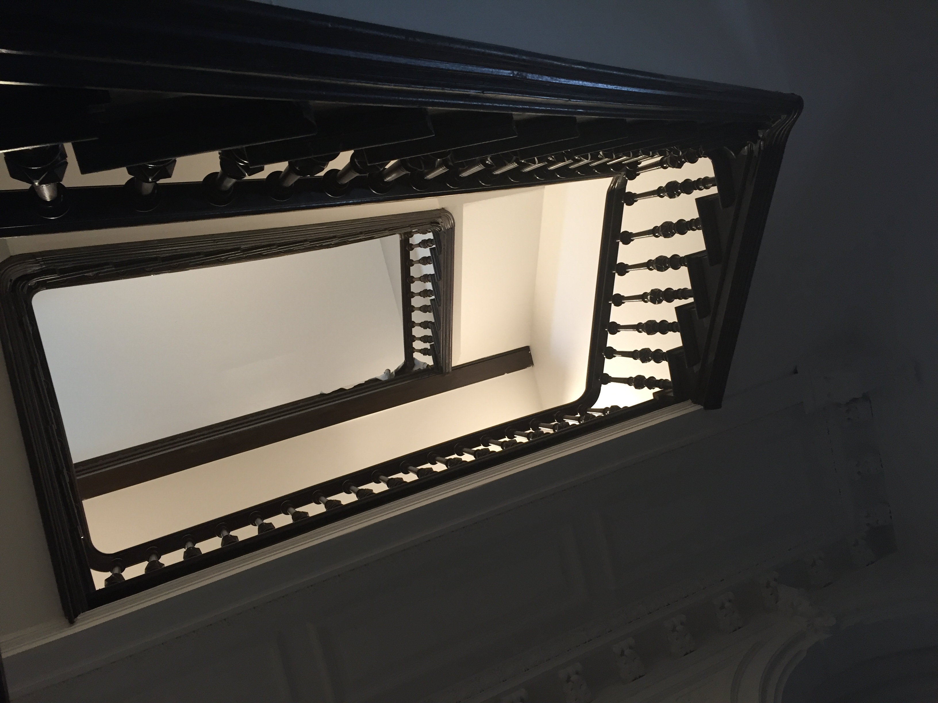 Es geht zum Hansaring und es handelt sich bei der nächsten Station um ein zukünftiges Coworking-Büro… Mit fragenden Blicken liefen wir Caro hinterher. Plötzlich blieben wir vor einem rustikalen Tor stehen. Ein junger Mann Anfang 30 öffnete die Pforten und ließ uns, die stillschweigende Truppe, in den gigantischen Altbau rein. Die hohen Decken, das alte, aus Holz geschnitzte Gelände und die historischen Bemalungen an den Decken versetzen uns für die erste Minute ins Schweigen. Ein Traum für die eigenen vier Wände, aber für ein Coworking? Oliver musste schmunzeln und erzählte uns von der Vision seines Vaters, die er jetzt mit dem Wertheim, dass nach dem Heimatort seines Vaters benannt wurde, Realität werden lässt.