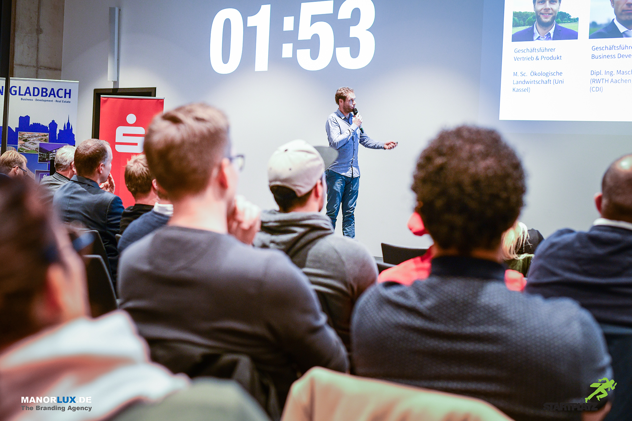 Am Montagabend war es soweit und der Kampf um einen der begehrten Plätze im großen Rheinland-Pitch Winterfinale am 26. November in Köln ging in die nächste Runde. Vier Startups und Gründungswillige hatten dabei die Chance ihre Geschäftsidee in einem 7-minütigen Pitch vor Unternehmen, Investoren und Gründungs-Interessierten zu präsentieren und sich im Anschluss 7 Minuten den Fragen der hochkarätigen Jury bestehend aus Matthias Gräf (STARTPLATZ), Marcell Jansen, Ulrich Schückhaus (Wirtschaftsförderung Mönchengladbach), Detlef Braun (NRW Textilakademie) und Mark Nierwetberg (nextMG), und des Publikums zu stellen.