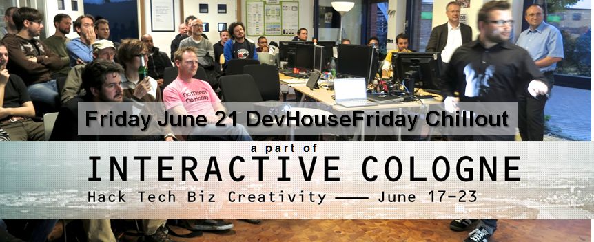DevHouseFriday ist ein Event von Interactive Cologne, dass für neugierige und kreative Leute gedacht ist, die Spaß an Themen rund um Technology haben. Inspiriert ist das Event von SuperHappyDevHouse.