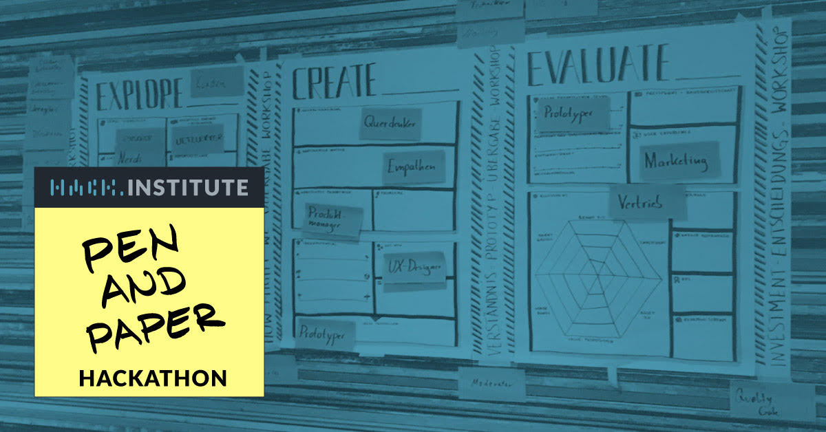 Anders als bei einem herkömmlichen Hackathon wird beim Pen & Paper Hack nicht programmiert. Nichtsdestotrotz ist das Ziel, in den verfügbaren 8 Stunden Verständnisprototypen zu entwickeln, und zwar mit Stift und Papier.