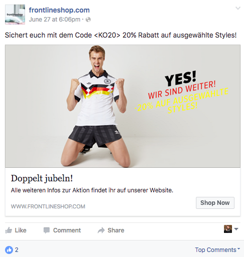 Ad Text: „Sichert euch mit dem Code <KO20> 20% Rabatt auf ausgewählte Styles!“