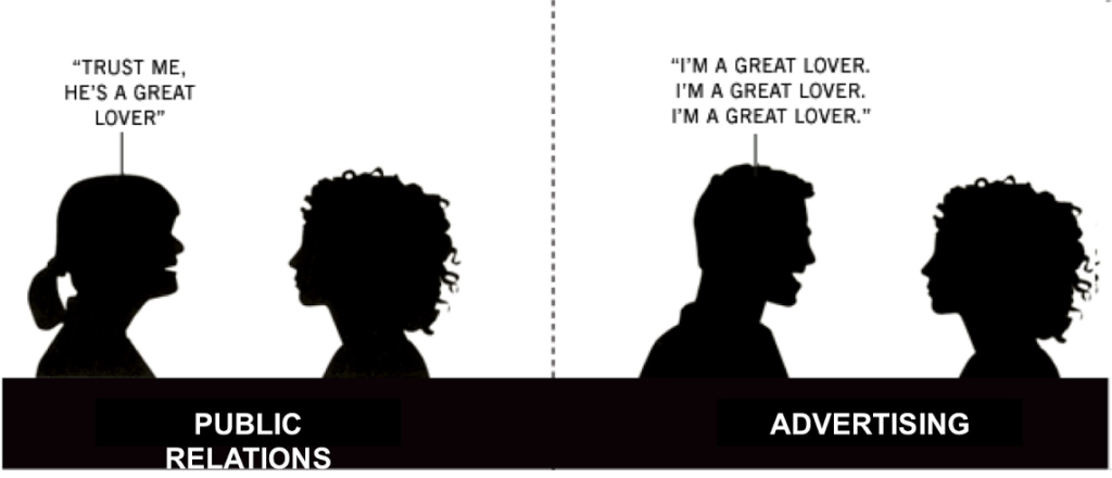 So ganz stimmt das Bild allerdings mittlerweile nicht mehr – seit das Internet zum Mitspieler in der Unternehmenskommunikation geworden ist, kann man nicht mehr klar die Grenzen ziehen. Und gerade das macht es umso spannender! PR, Werbung, Content Marketing, Social Media… alles wächst zu einer großen Disziplin zusammen. Für Startups ist diese Entwicklung aber weniger relevant, denn Gründer müssen eh Generalisten und Mädchen für alles interdisziplinär sein ;)