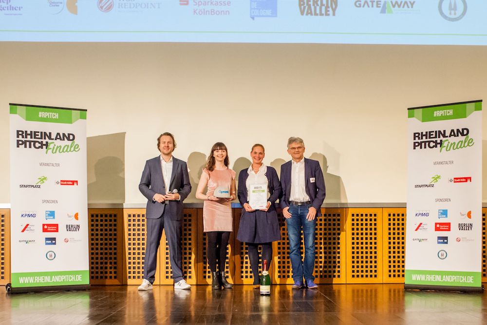 Dr. Lorenz Gräf bedankt sich für die rege Teilnahme am Rheinland-PitchDen Startschuss für einen spannenden Pitch gab das erste Startup mit Christian Schmickler von Cryptomator, Gewinner des Rheinland-Pitch Halbfinales in Bonn. Das Team entwickelt eine quelloffene Verschlüsselungssoftware, mit der sich für die Cloud bestimmte Dateien auf dem Computer oder Smartphone einfach verschlüsseln lassen und versprechen damit Vertraulichkeit in jedem Cloud-Speicher. Im Anschluss stellte Jürgen Resch die Businessidee von WMoove, vor. Das Team gewann das Rheinland-Pitch Halbfinale in Köln. WMoove macht mit einer innovativen Technologie Abfallverursacher zum „Power Charging Provider“. WMoove produziert Miniatur-Müllverbrennungsanlagen für Geschäftskunden die als Ladestationen für Elektroautos genutzt werden können. Benjamin Dammertz von FoxBase, Gewinner der Wildcard auf Facebook, stand als dritter Kandidat auf der Bühne und präsentierte seine Software-Lösung „Digital Product Selector“, der Kunden und Vertriebspartnern dabei helfen soll, schnell, einfach und digital das beste Produkt zu finden und auf diese Weise den B2B-Vertrieb zu revolutionieren. Das letzte Startup Nyris gewann das Rheinland-Pitch Halbfinale in Düsseldorf und wurde von Eva Hloushek vertreten. Das Team hat eine Bilderkennungs-Technolgie entwickelt, mit der sich innerhalb eines Bruchteils einer Sekunde mit der Linse des eigenen Smartphones Produkte erkennen lassen.