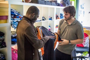 Hans Sarpei schaute sich die Startups genau an: Hier mit Tanked Gründer Tobias Breuer