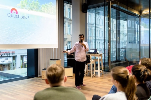 Zusätzlich leiten wir die Teams in den regelmäßig stattfindenden Bootcamps durch den kompletten Prozess, vom Prototypen zur Marktreife. Hier arbeiten wir mit Methoden wie dem Lean Canvas, der Lean Startup Methodik, Rapid Prototyping, Design Thinking etc. Die Teams lernen von externen Experten und Mentoren über UX, Growth Marketing, Conversational Design, Sales & Customer Acquisition, etc. Natürlich dürfen auch Pitch Trainings, sowie Sessions zum Financial Planning und Investor Relations nicht fehlen.“