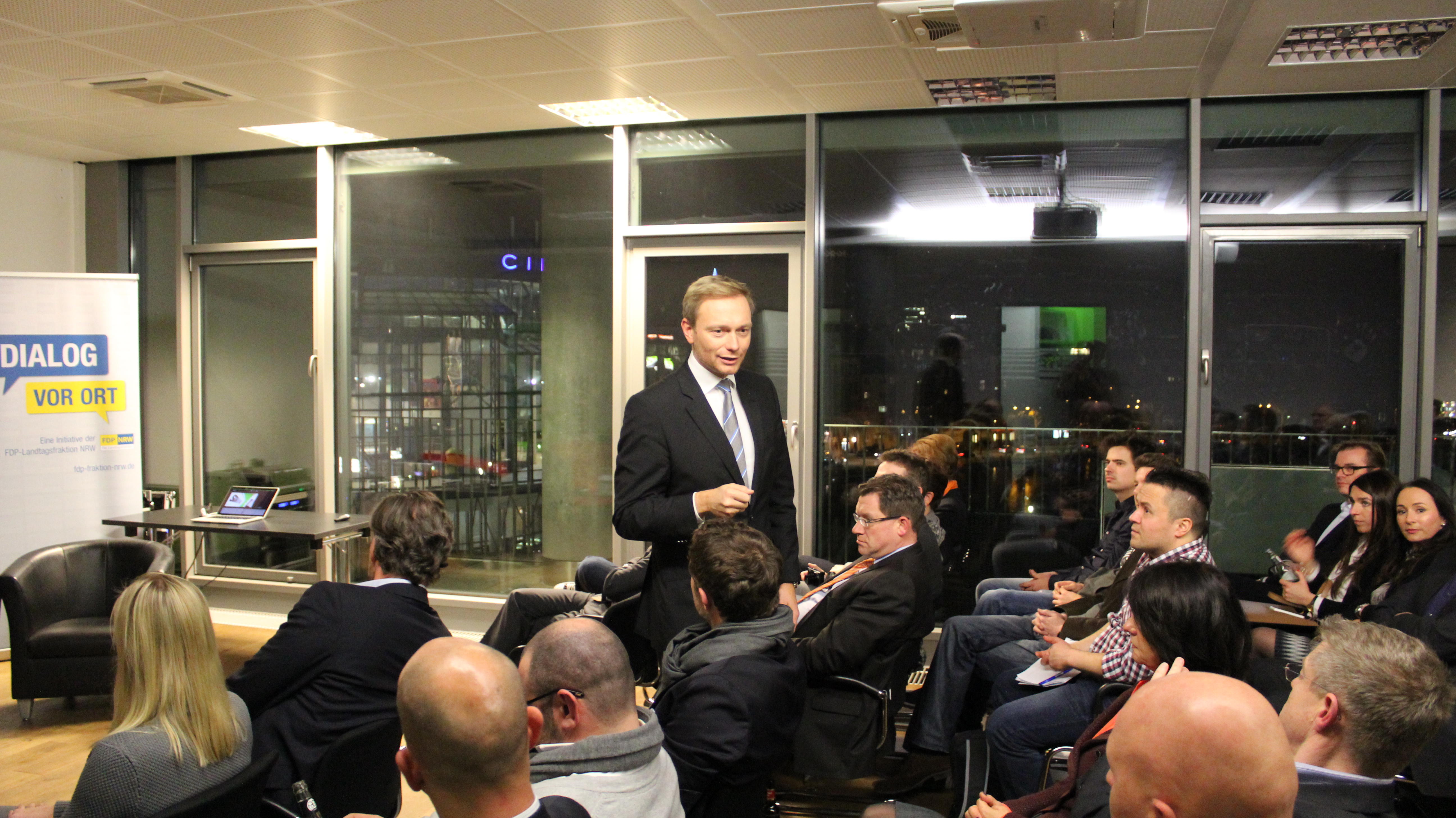 Der Geschäftsführer des STARTPLATZes Lorenz Gräf begrüßt die Anwesenden in Köln und stellte das Gründungszentrum im Mediapark vor. Danach erhielt Christian Lindner das Wort. Das Publikum war bunt gemischt, vo jungen 20jährigen Gründern bis hin zu erfahrenen Ü80jährigen FDP-Mitgliedern, war alles mit dabei. In 20 Minuten lauschten die Gäste nun einem interessanten Vortrag über Wirtschafts und Gründerbranche in Deutschland.