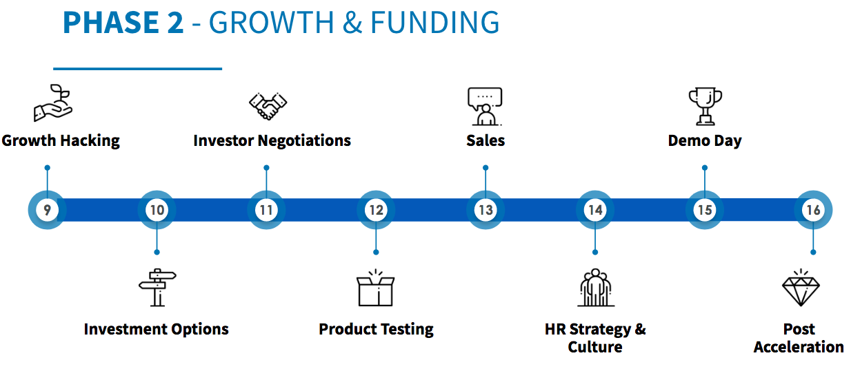 In Themenwochen wird der Fokus jeweils auf einen bestimmten Bereich gelegt, der die Startups dabei unterstützt, schnell Fortschritte zu machen. Die Themen in den ersten Wochen beinhalten Themen wie MVP Testing & Validierung, Tech-Development, Recht und Investoren-Pitch. Nach zwei Monaten kommt es zu einem Development-Status-Meeting vor der internen STARTPLATZ Jury. Hier entscheidet sich, welche sieben Teeams es mit Fleiß und Engagement geschafft haben, die zweite Phase des STARTPLATZ Accelerators zu erreichen. Diese zweite Hälfte des Programms behandelt Themen wie Growth Hacking, Investment Optionen und Verhandlungstipps, und endet mit dem Höhepunkt: Dem großen Demo Day im Juni 2020!