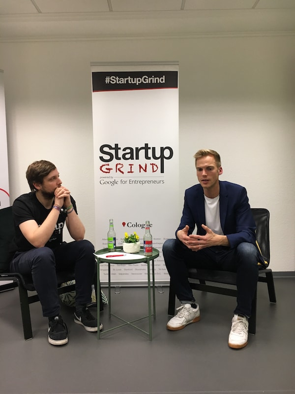 Tim Betzin, Co-Founder von Rausgegangen (l.) im Fireside Chat mit Martin Bressemhttps://www.facebook.com/startupgrindcgn/videos/2186589158060645/