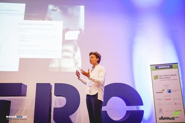 Dabei ging sie vor allem auf neue Handlungsfelder von New Work ein, die Prozesse in einem tradierten Unternehmen erleichtern. Dazu gehöre etwa die Digitalisierung eigener interner Prozesse (so etwa das Onboarding, Recruiting, SAP etc.), um Daten transparent und verfügbar zu machen. Aber auch die Etablierung von Werten wie Rücksichtnahme und Flexibilität seien wichtige Anker für eine neue Arbeitskultur, ebenso wie neue Arten der Führung, die auf flache Hierarchien, Kollaboration und agiles Leadership beruhen.