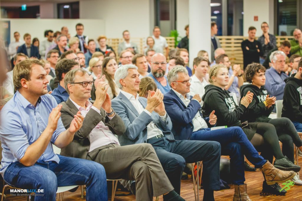 Volles Haus in der DKV Euro Service Zentrale in RatingenAnschließen hatten die Startups fünf Minuten, ihr Pitchdeck zu präsentieren und in weiteren fünf Minuten, um die Fragen der Zuschauer zu beantworten.