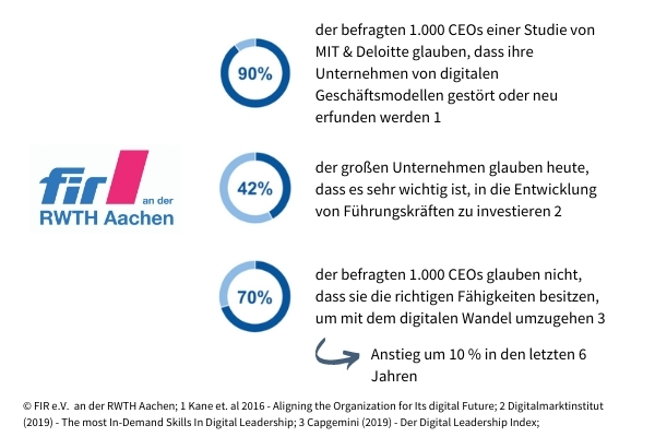 Mit der Digitalisierung sehen sich Unternehmen nicht nur mit dem Einsatz neuer Technologien konfrontiert, sondern auch mit der Veränderung von Führungsrollen und Führungsverhalten. Auf der einen Seite müssen Mitarbeiter für Veränderungen sensibilisiert und auf dem Weg der digitalen Transformation mit einbezogen werden, auf der anderen Seite müssen neue Talente für das Unternehmen gewonnen werden. Diesem Thema haben wir uns am 28. Oktober beim digitalen Roundtable mit unseren Partnern FIR an der RWTH Aachen, dem PizF (Praxisinstitut für zertifizierte Führung) und Führungs-Vertretern aus der Corporate Welt gewidmet.