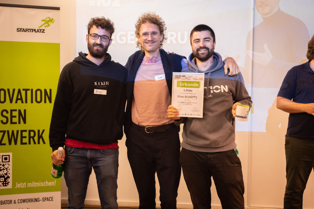 Wir gratulieren der Studierendenplattform Max Academy, die den Rheinland-Pitch #102 für sich entscheiden konnte! Bei dem Startup handelt es sich um eine unabhängige Plattform von Studierenden für Studierende aus den Bereichen der Ingenieurs- und Naturwissenschaften. Das Team von Max Academy verbindet eines: sie alle haben ein Studium in diesem Bereich abgeschlossen – oder es zumindest versucht – und wissen daher, wieso so viele Studierende ihr Studium abbrechen oder durch ihre Prüfungen fallen. Die Plattform bereitet die Studierenden aber nicht nur individuell auf anstehende Prüfungen vor, sondern bietet gleichzeitig eine Job-Plattform, um sie, sobald sie soweit sind, mit passenden Unternehmen zu matchen. So will Max Academy den akuten Fachkräftemangel direkt an zwei Stellen anpacken und beheben.