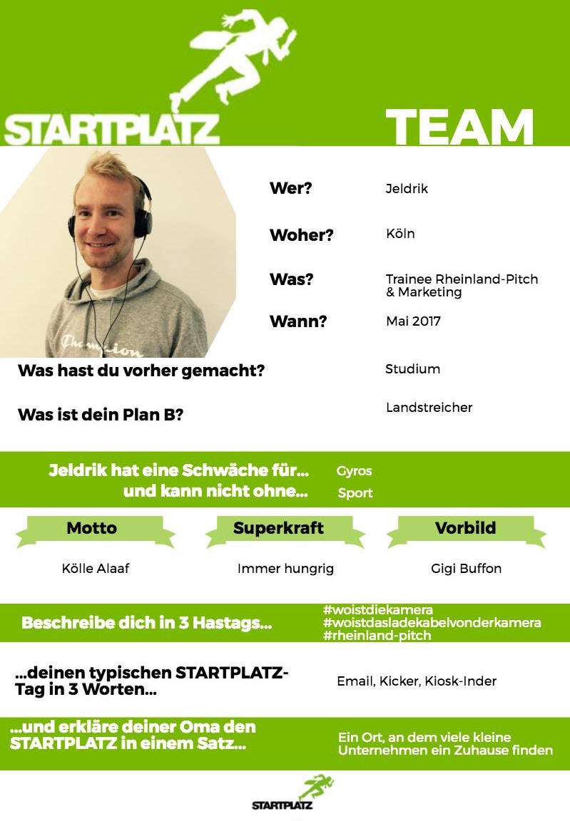 Weiter geht’s bei unserer STARTPLATZ-Team Vorstellungsrunde mit Jeldrik!