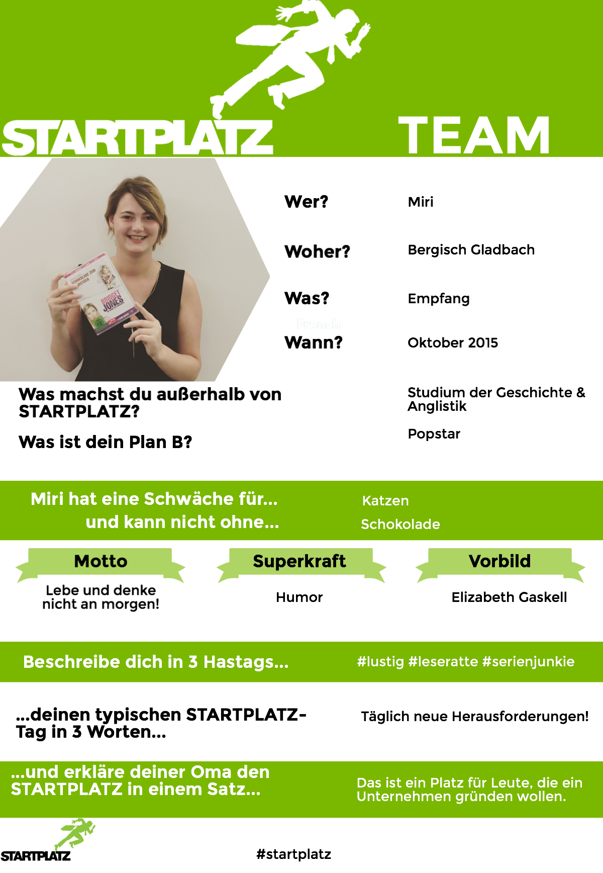 Weiter geht’s bei unserer STARTPLATZ-Team Vorstellungsrunde mit Miri!