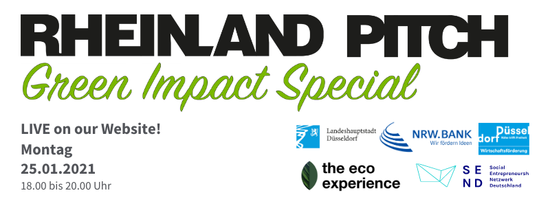 Anlässlich des neuen Jahres und der aktuellen Herausforderungen steht der kommende Rheinland-Pitch #99 ganz im Zeichen des Social Entrepreneurship. Bereits zum dritten Mal suchen wir gemeinsam mit SEND Vorreiter:innen mit neuen und innovativen Lösungen für die Herausforderungen unserer Zeit. Der Rheinland-Pitch mit dem Namen “Green Impact Special” ist die letzte Generalprobe vor dem großen Jubiläumspitch #100 und stellt damit – nicht nur thematisch – die Weichen für die Zukunft.
