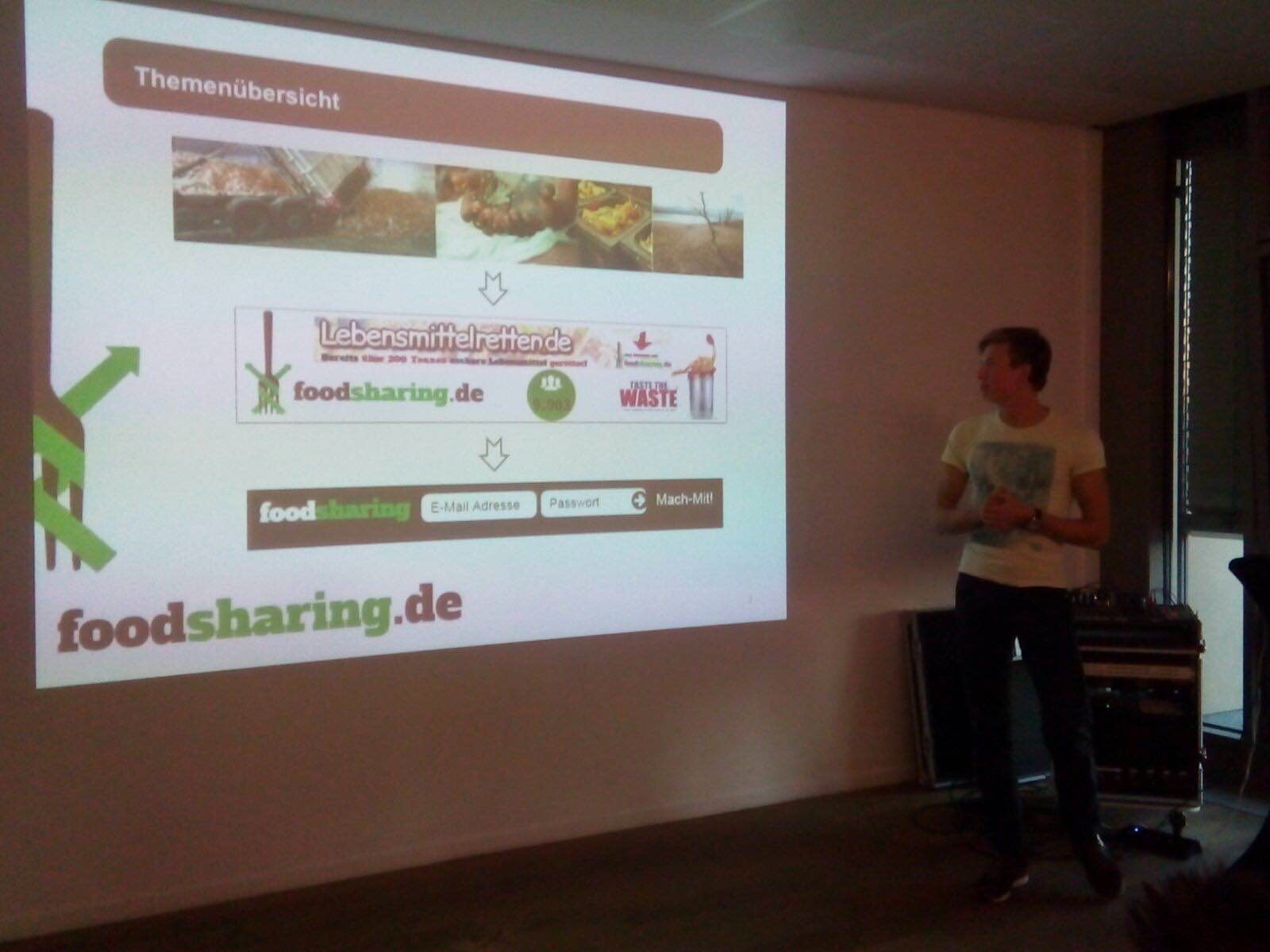 Anschließend übernahm David Kolkenbrock von Foodsharing Köln das Wort und machte auf den immensen Lebensmittelkonsum in Deutschland, aber auch weltweit, aufmerksam. Neben den großen Verlusten in der Lebensmittelkette, wird es zunehmend wichtiger, mit den vorhandenen Ressourcen verantwortungsvoll umzugehen und das eben nicht nur kurzfristig. Denn „zunehmender Erdölverbrauch, hohe Wasserverschwendung, Waldrodungen, Kunstdünger, Pestizide und ein wachsendes Plastikproblem in der Lebensmittelindustrie sollten nicht nur Einzelne etwas angehen, sondern die Verantwortung eines jeden abverlangen“, so David. Sein praktischer Tipp: