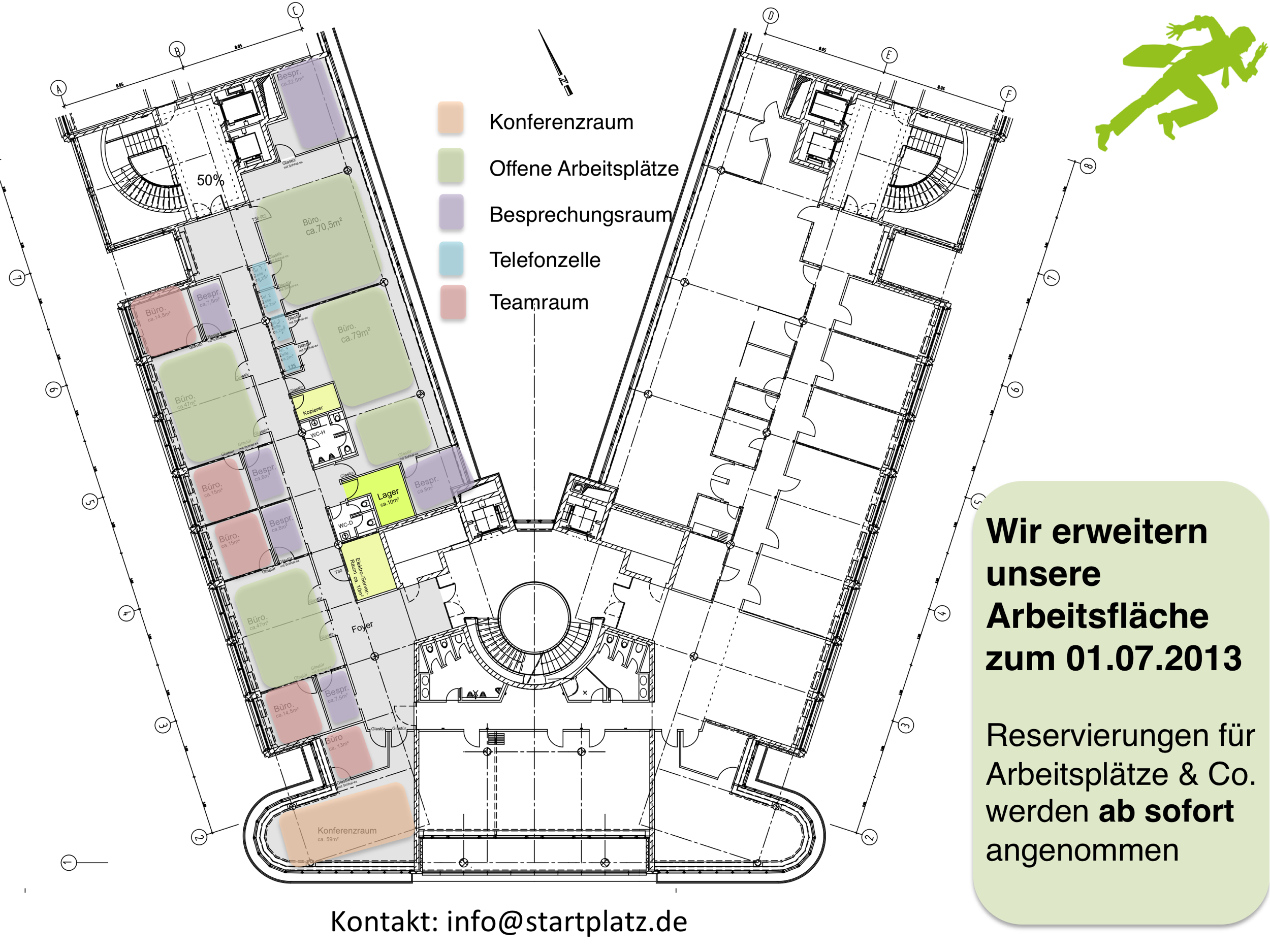Nach der Eröffnungsfeier im November 2012 ist der STARTPLATZ kräftig gewachsen. Um den Startups aus dem Rheinland noch mehr Entfaltungsmöglichkeiten zu bieten, erweitert der STARTPLATZ im Sommer 2013 seine Fläche.