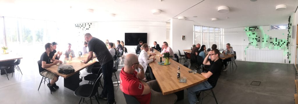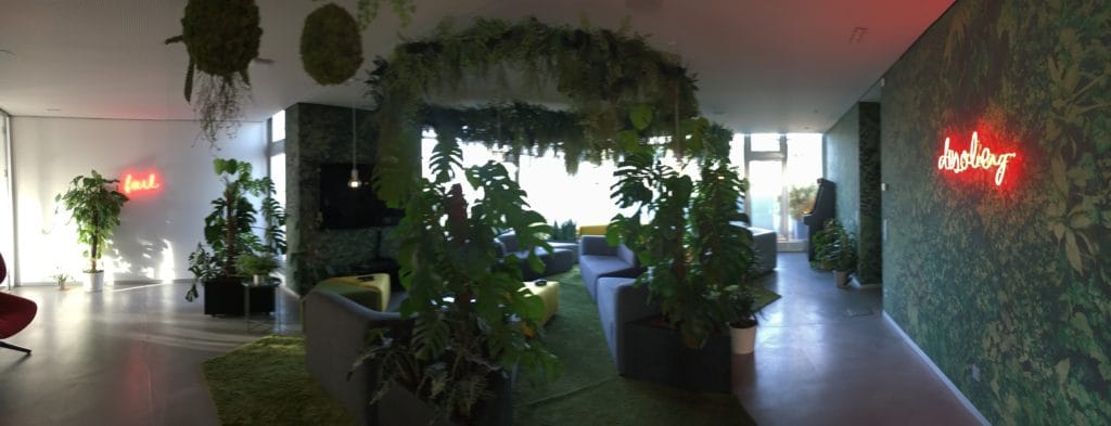 Selbst wenn es dieses Mal keinen Fireside Chat gegeben hätte, wären vermutlich alle Gäste happy gewesen: Das InVision Headquarter im Düsseldorfer Medienhafen in direkter Nachbarschaft zum STARTPLATZ ist stylisch, modern, hell, sehr grün (da fühlen wir uns direkt heimisch) und es gab hervorragendes Essen aus der hauseigenen Küche. Hier fühlt man sich sofort wohl und merkt, dass „Mitarbeiter zuerst“ (der erste Satz, der einem ins Auge springt, wenn man die Website aufruft) hier auch gelebt wird.
