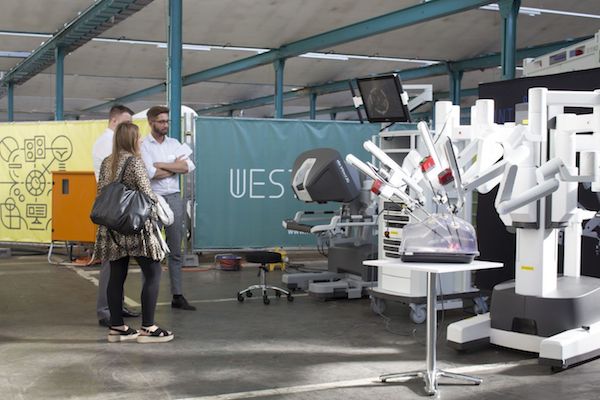 Das da Vinci®-Chirurgie-System von IntuitiveNach einer Begrüßung durch den Gastgeber Dr. Ulrich Schückhaus von der WFMG und Karl-Uwe Büthof, Ministerialdirigent des Wirtschaftsministerium NRW, gehörte die Showbühne den vier Startups. In spannenden Pitches präsentierten Doctolib, BetterDoc, GigWork und WhatsIn My Meds ihre Unternehmenskonzepte und stellten sich den zahlreichen Fragen des bunt gemischten Fachpublikums aus der Gesundheitsbranche, Medizintechnik und Ärzteschaft.