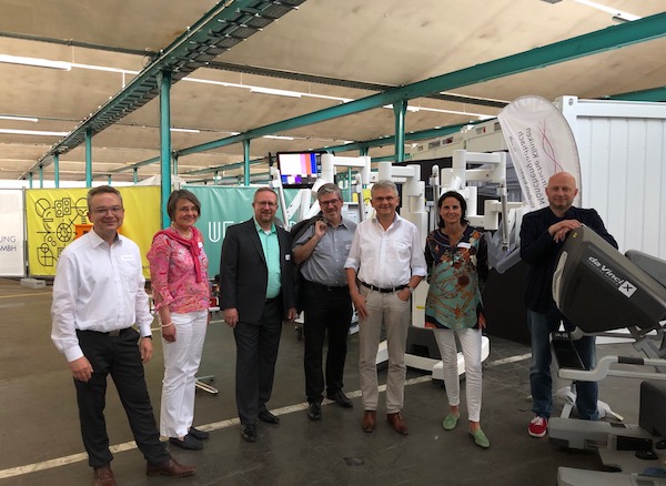 Ein besonderes Highlight und Herzstück der Ausstellung repräsentierte die Demonstration des da Vinci®-Chirurgie-Systems, das Chirurgen das zitterfreie Operieren ermöglicht. Die Städtischen Kliniken brachten damit eine hochmoderne Medizintechnologie zur Live-Vorführung in die Gründerfabrik und boten den Veranstaltungsteilnehmer damit die einmalige Gelegenheit, in die Rolle eines Chirurgen zu schlüpfen und einen minimalinvasiven Eingriff zu simulieren.