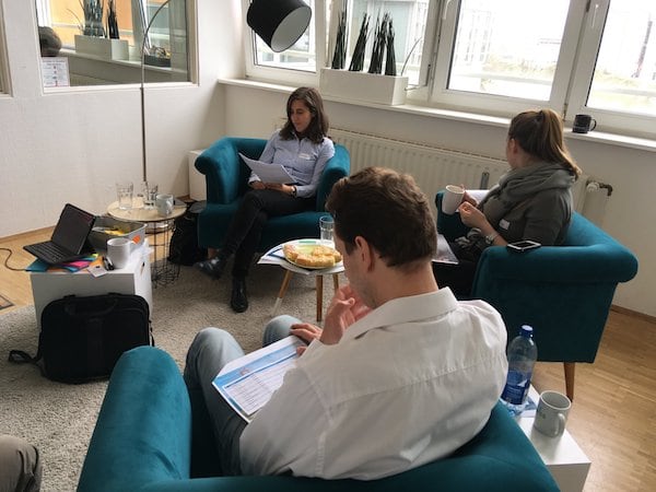 Nach der Auswahl teilten sich die Teilnehmer in Gruppen auf, um gemeinsam Geschäftsmodelle zu entwickeln und mit den Ideengebern an neuen Prozessen zu feilen. In den nächsten fünf Stunden wurden mit der Unterstützung der Coaches und Experten der Henk International GmbH, Protostart und Ecodynamics Canvas Modells erstellt, Märkte analysiert und der sieben-minütige Pitch, der am Ende des Tages auf die Teams wartete, vorbereitet. Die nötige Orientierung bot ein Leitfaden, mithilfe dessen Ideen gesammelt und gemeinsam gebrainstormt wurde.