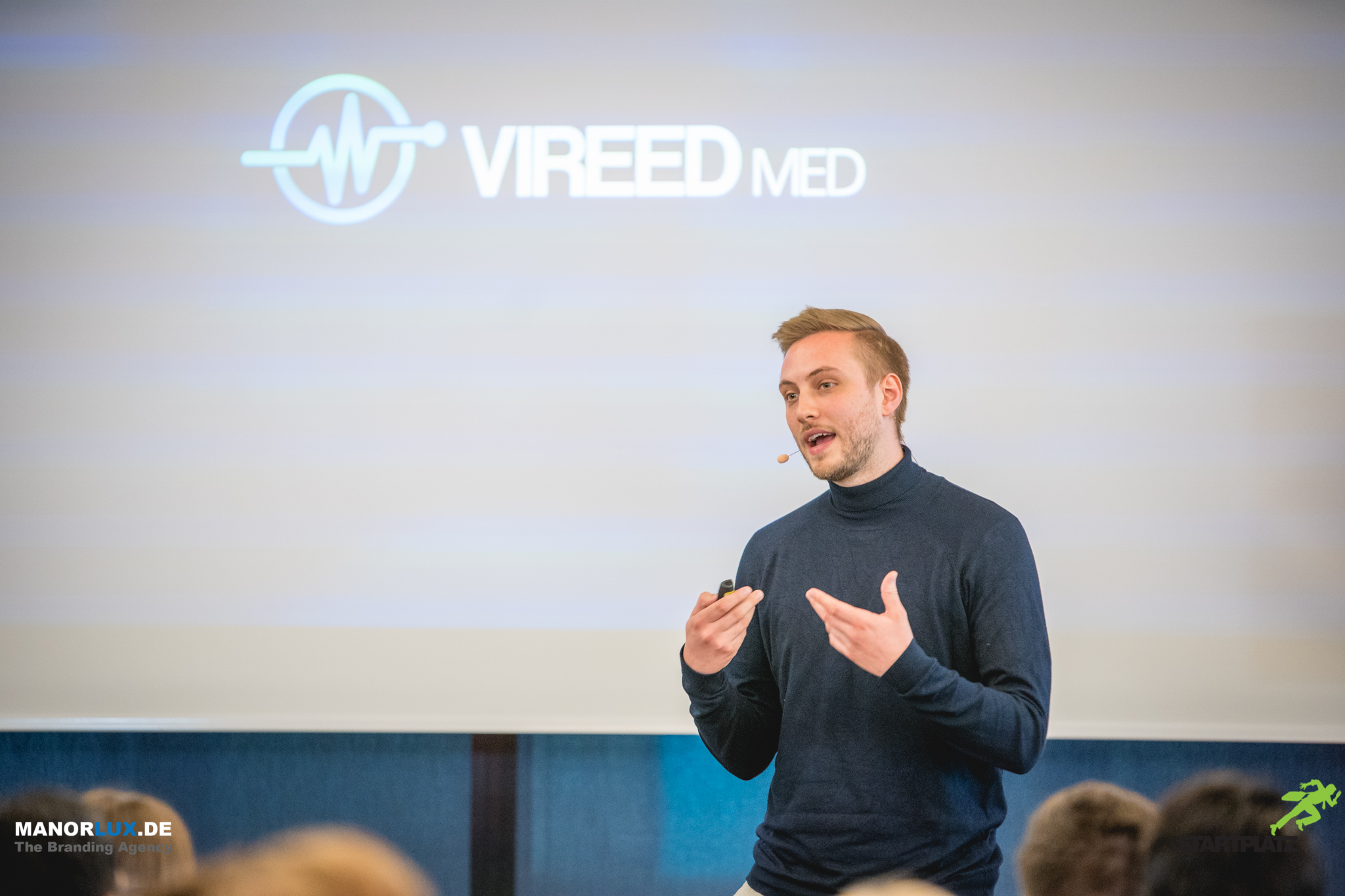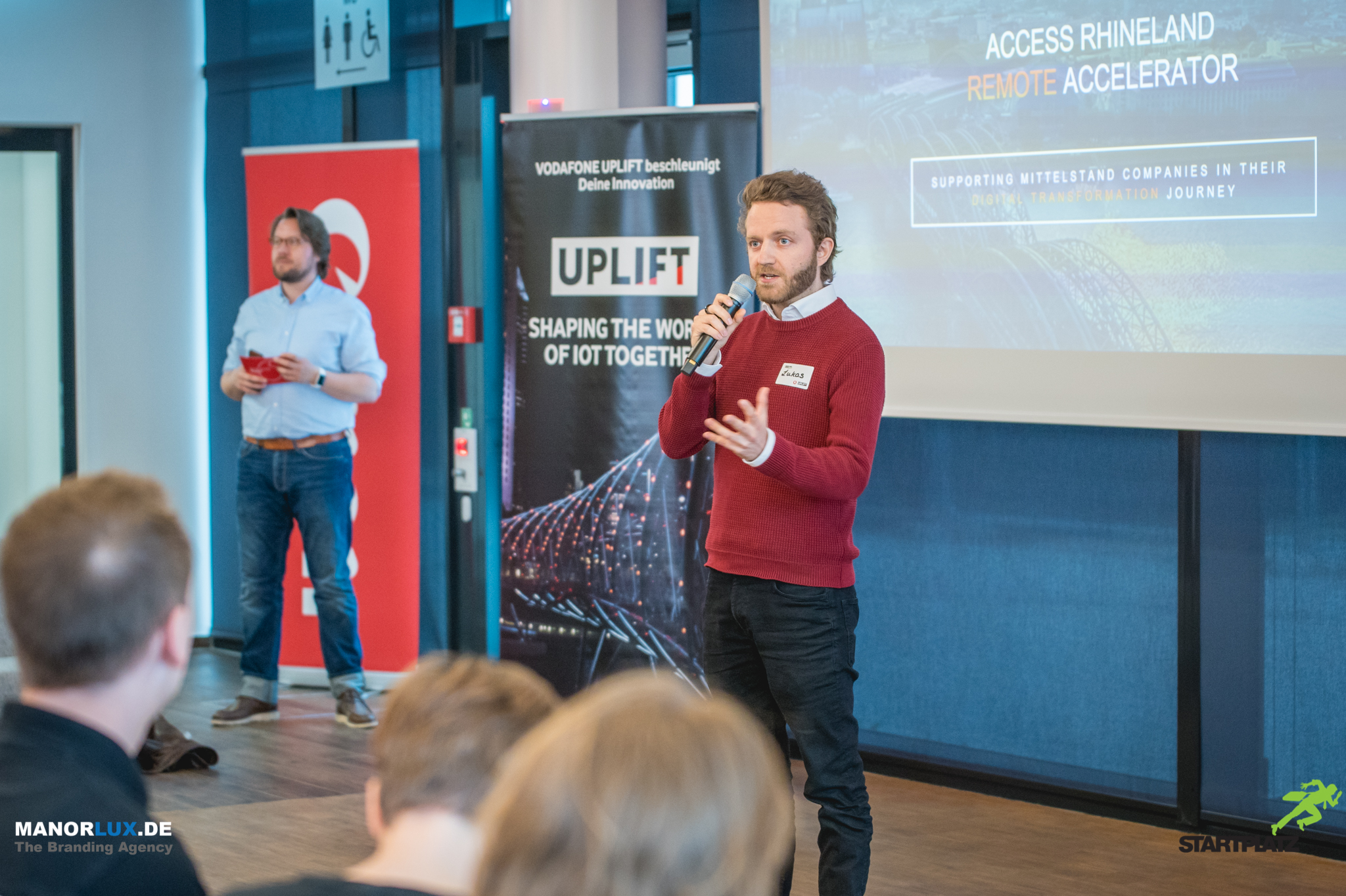 Lukas Gräf (COO STARTPLATZ) begrüßt die Zuschauer des Rheinland-Pitch UPLIFT Specials am Vodafone CampusNachdem die teilnehmenden Startups an der Pitching Masterclass von Vidar Andersen teilgenommen und sich gegen ihre starken Konkurrenten durchgesetzt hatten, erhielten die qualifizierten Startups nun die Möglichkeit ihre Geschäftsideen vor dem Düsseldorfer Publikum zu präsentieren. Nach einer Begrüßung und Einführung in den Abend und in das Vodafone UPLIFT Programms, durch Johannes Ametsreiter (CEO Vodafone Deutschland GmbH) und Julia Doll (Head of Innovation, Vodafone Deutschland GmbH), stellte Lukas Gräf (COO STARTPLATZ) die Vision von Rheinlands größtem Startup Inkubator und Accelerator, vor. Anschließend ging es los mit dem ersten Startup-Pitch von VIREED.
